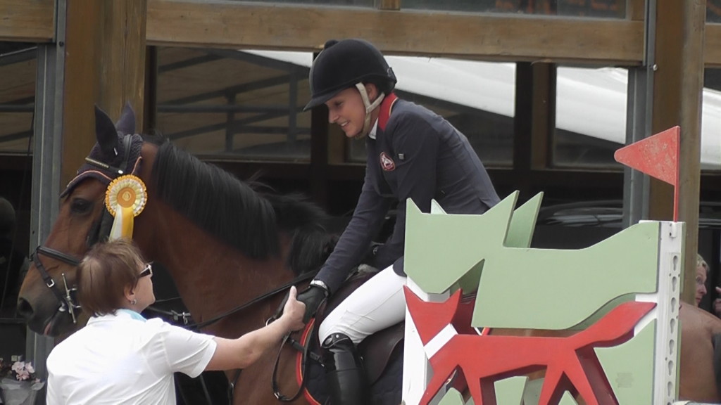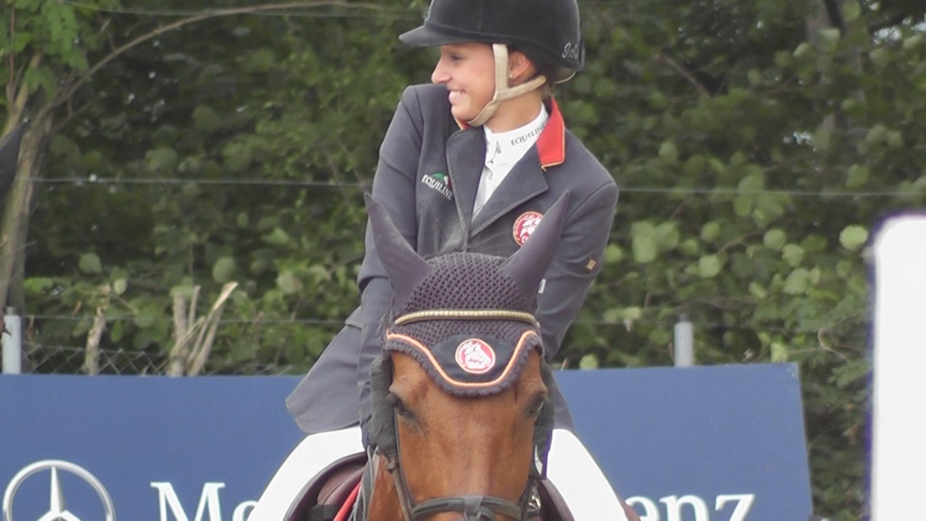 Palatino siegt im Einlaufspringen der kl. Tour (1,35 Meter) vor Jason Smith (GBR) und Emely Karoline Paulsen (NOR)