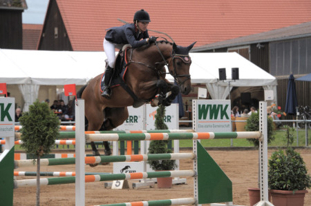 GNT (Germany`s next Topmodel) siegte mit WN 8,5 im sehr gut besetzten Starterfeld der 6-jährigen Springpferde.